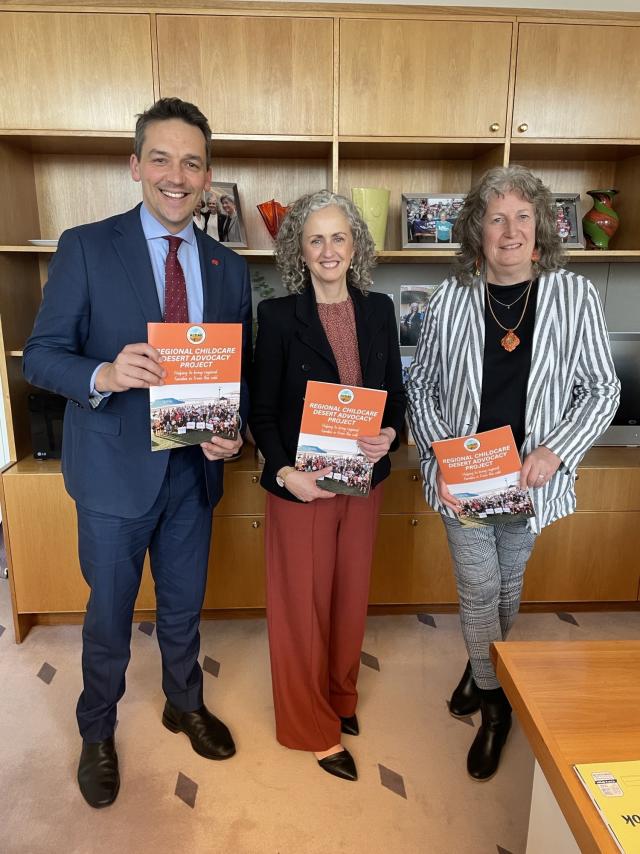 SA Minister for Education Hon Blair Boyer MP, Federal Minister for Early Childhood Education Senator Jess Walsh and Northern Areas Council Mayor Sue Scarman in Canberra. (Supplied)
