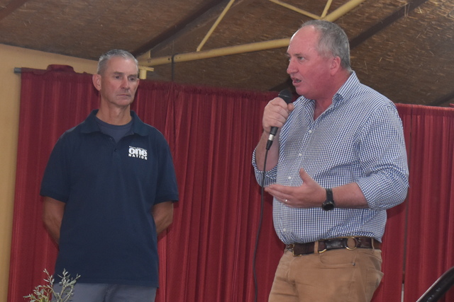 One Nation MP Barnaby Joyce speaks on stage alongside Candidate for Ngadjuri David Paton. (536221)