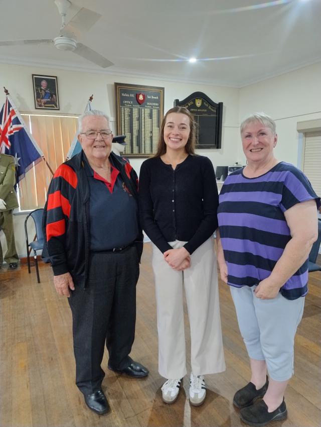 Terry Halford, exercise physiologist Georgia and Mallala RSL Sub Branch President Joanna Grotto at the RSL Clubrooms, where the Mallala Exercise Group held its first session on Monday. (Supplied)