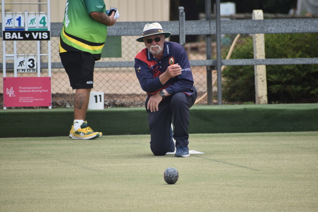 Wasleys' Kevin Bettens watches as his ball heads towards the jack. (522960)